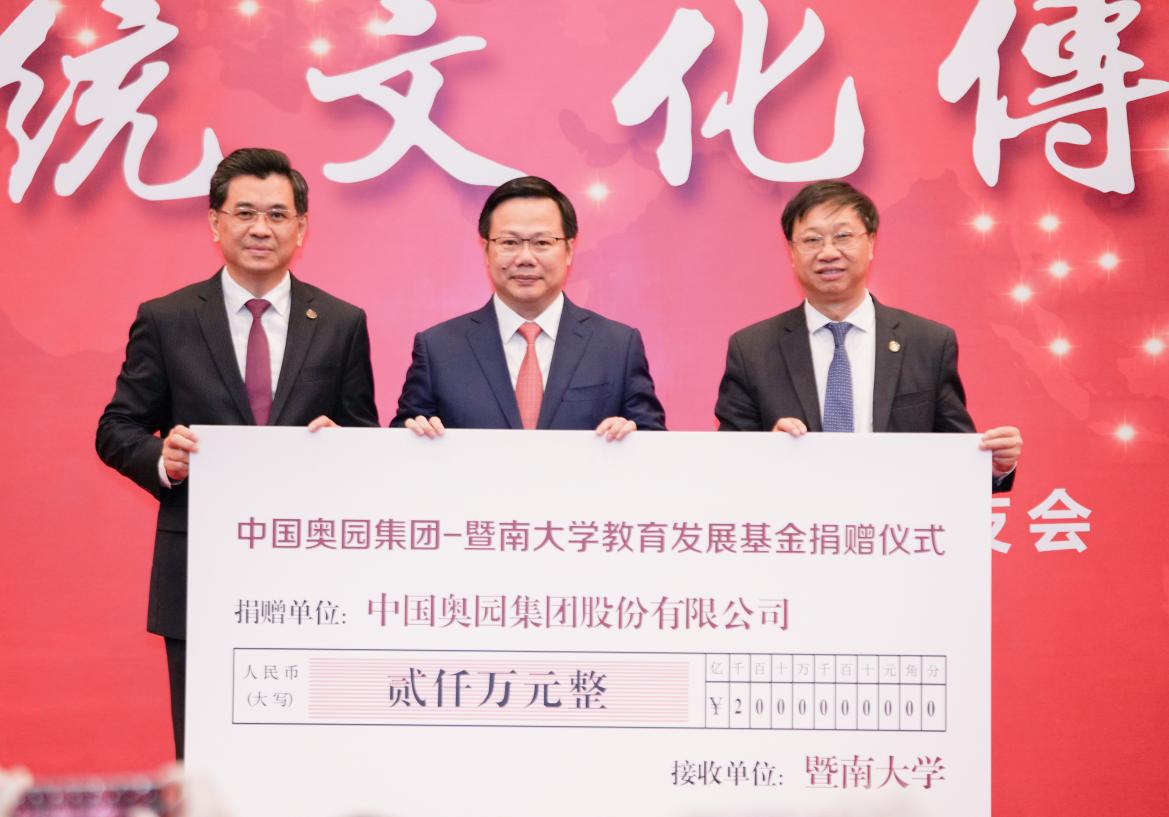 2019年,中国奥园向暨南大学再捐2000万,累计捐款3200万元