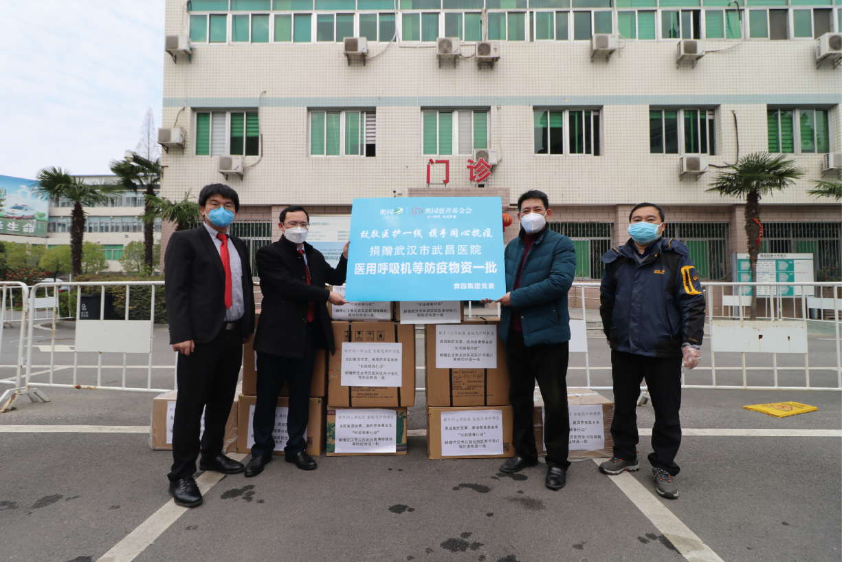 2020年,奥园集团党委、奥园慈善基金会向武汉市武昌医院捐赠医用呼吸机等防疫物资